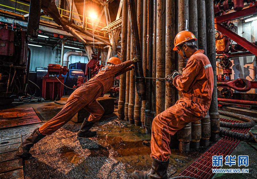 鉆井隊(duì)分兩班24小時(shí)不間斷運(yùn)轉(zhuǎn)。在一個(gè)班次中,9名鉆井工人協(xié)同操控鉆井設(shè)備,鉆探著海洋油氣資源。契入海底的“探針”常可達(dá)五、六千米。