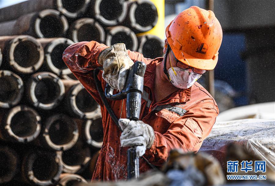 7月27日,一名工人在位于南海北部海域的勘探三號鉆井平臺上作業(yè)。新華社記者蒲曉旭攝