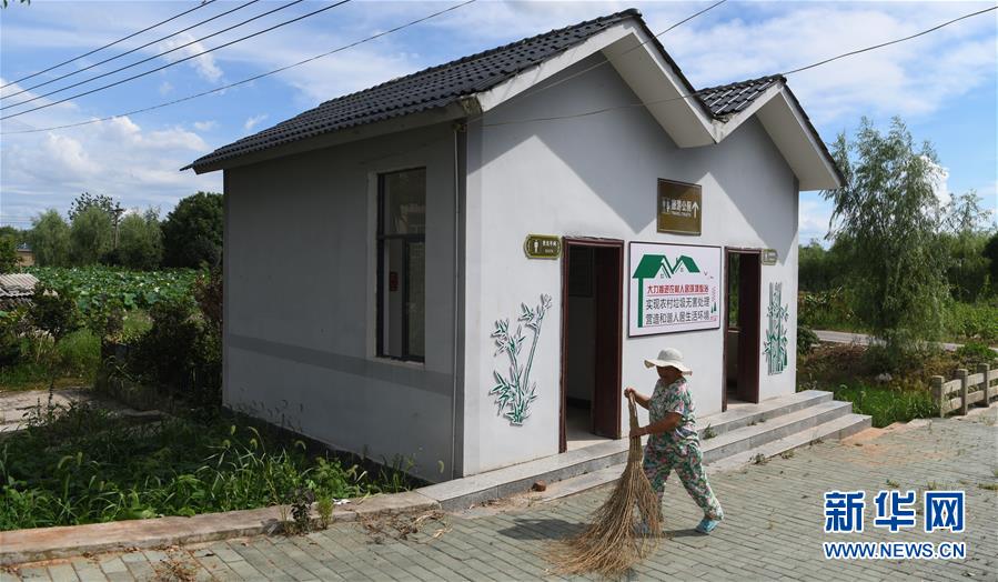 鄂州市長(zhǎng)港鎮(zhèn)峒山村村民在打掃衛(wèi)生(8月6日攝)。新華社記者 程敏 攝