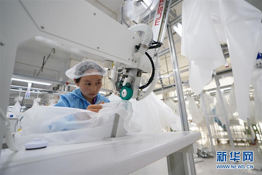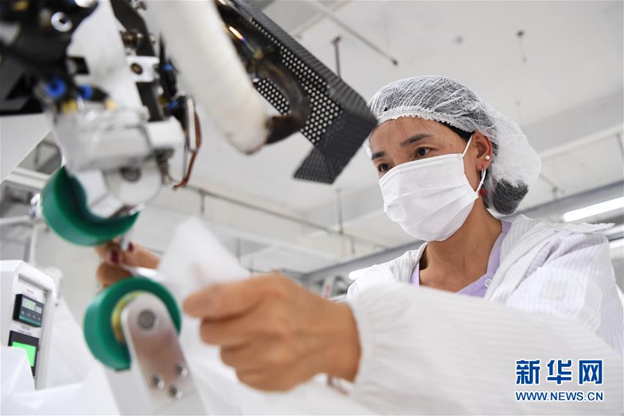 8月9日,甘肅拓奇扶貧車間的員工在服裝加工生產(chǎn)線上作業(yè)。甘肅拓奇扶貧車間位于甘肅省臨夏回族自治州積石山縣,是依托東西部扶貧協(xié)作平臺(tái)引進(jìn)的服裝加工企業(yè)。扶貧車間建成投產(chǎn)以來帶動(dòng)就業(yè)近300人,其中吸納建檔立卡貧困戶就業(yè)110人,實(shí)現(xiàn)了貧困群眾就地就近就業(yè)增收的目的,為助推當(dāng)?shù)孛撠毠?jiān)及縣域經(jīng)濟(jì)發(fā)展發(fā)揮了重要作用。新華社記者陳斌攝。