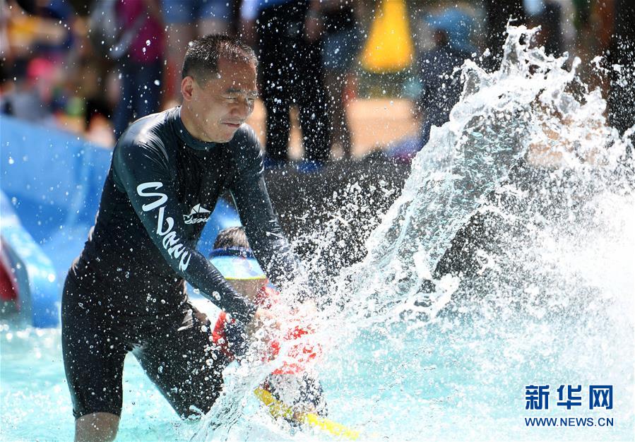 8月9日,市民在南宮五洲植物樂園戶外戲水區(qū)游玩。近期,在做好新冠肺炎疫情防控的前提下,位于北京市豐臺區(qū)的南宮五洲植物樂園戶外戲水區(qū)對外開放。市民在戲水的同時還可以在沙灘上畫沙畫、在新游樂項目“叢林網(wǎng)繩”里穿梭跳躍,豐富暑期生活。新華社記者任超攝。