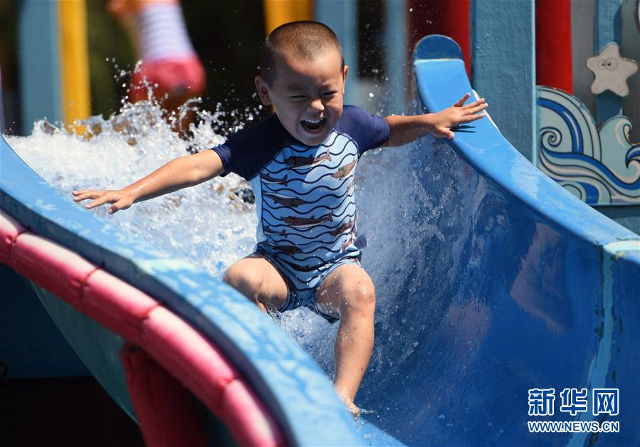8月9日,一名小朋友在南宮五洲植物樂園戶外戲水區(qū)游玩。近期,在做好新冠肺炎疫情防控的前提下,位于北京市豐臺區(qū)的南宮五洲植物樂園戶外戲水區(qū)對外開放。市民在戲水的同時還可以在沙灘上畫沙畫、在新游樂項目“叢林網(wǎng)繩”里穿梭跳躍,豐富暑期生活。新華社記者任超攝。