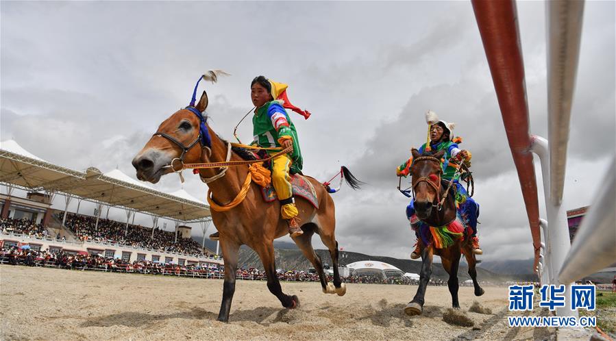 8月10日,騎手馳騁在當(dāng)雄縣賽馬場。新華社記者晉美多吉攝。