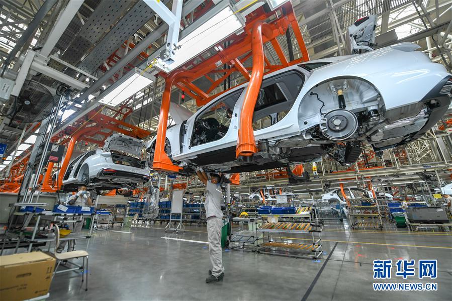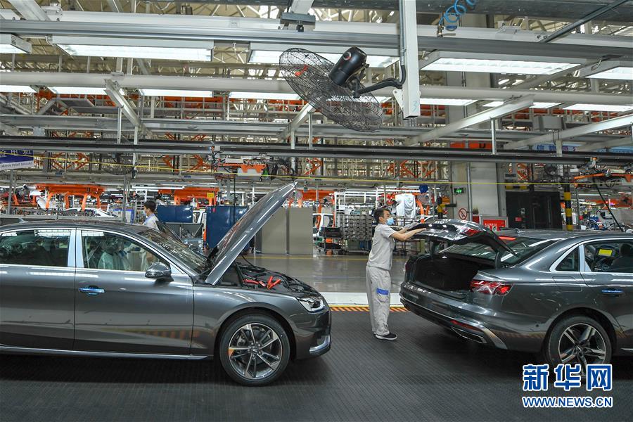 8月10日,在一汽-大眾長(zhǎng)春基地總裝車間,工人在裝配車輛。中國(guó)第一汽車集團(tuán)有限公司7月銷售整車32.2萬輛,同比增長(zhǎng)23.2%,延續(xù)上半年的增長(zhǎng)態(tài)勢(shì)。新華社記者張楠攝。