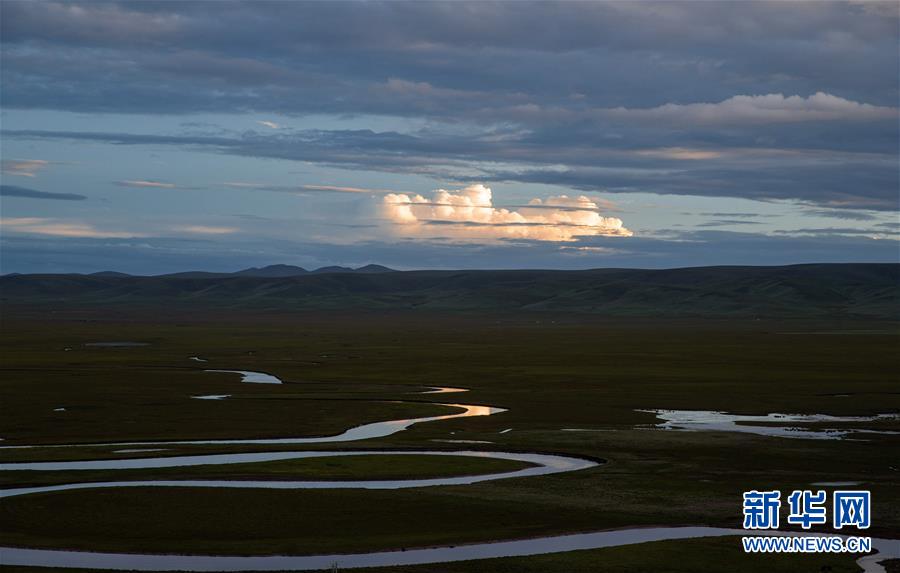 夕照下的泥拉壩濕地一角(8月9日攝)。新華社記者江宏景攝。