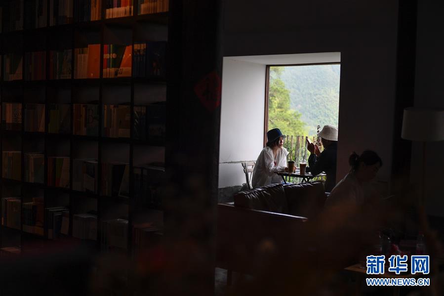 游客在浙江省麗水市松陽(yáng)縣四都鄉(xiāng)陳家鋪村的先鋒書店平民書局閱讀(7月17日攝)。新華社記者黃宗治攝。