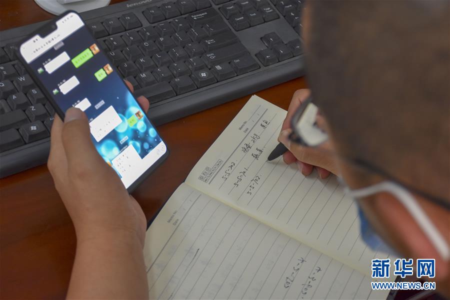 8月12日,烏魯木齊市天山區(qū)山西巷社區(qū)工作人員王志鷹在記錄當(dāng)天要完成的居民“服務(wù)清單”。新華社記者 高晗 攝
