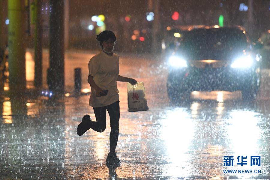 8月12日,在北京市朝陽區(qū)一路段,行人冒雨出行。新華社記者 鞠煥宗 攝