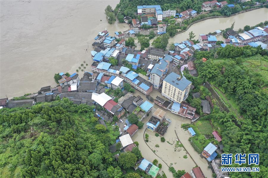 8月13日,在重慶市潼南區(qū)玉溪鎮(zhèn),涪江水位明顯上漲,洪水倒灌進(jìn)場鎮(zhèn)(無人機照片)。受上游強降雨影響,嘉陵江近日出現(xiàn)明顯漲水過程,“嘉陵江2020年第1號洪水”已在嘉陵江支流涪江形成。重慶市正式啟動洪水防御Ⅱ級應(yīng)急響應(yīng)。據(jù)初步統(tǒng)計,截至13日16時30分,位于涪江畔的重慶市潼南區(qū),沿涪江7個鎮(zhèn)街不同程度受災(zāi),受災(zāi)人數(shù)8209人,轉(zhuǎn)移人口6658人,農(nóng)作物受災(zāi)面積5579畝。新華社記者黃偉攝