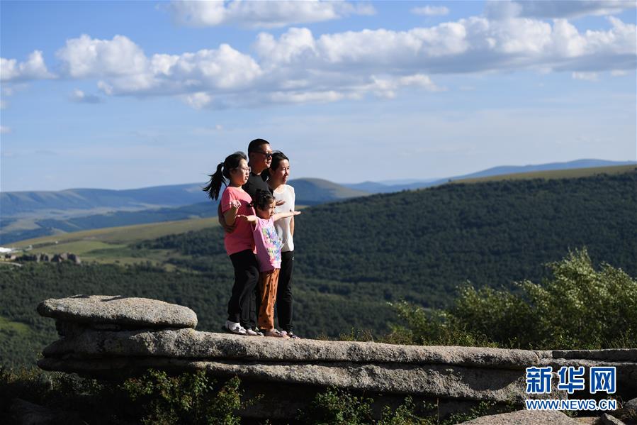 游客在克什克騰石陣景區(qū)拍照留影(8月11日攝)。克什克騰旗位于內(nèi)蒙古自治區(qū)赤峰市西北部,境內(nèi)的湖泊、河流、草原、森林等自然景觀,讓人們流連忘返。新華社記者劉磊攝