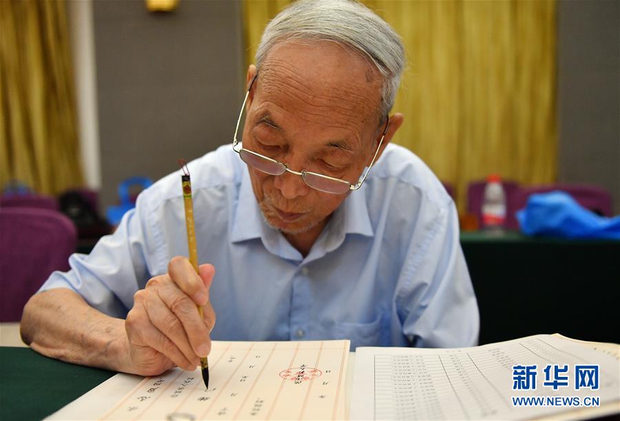 8月13日,陜西師范大學(xué)退休教師符有堂書寫錄取通知書。當日,陜西師范大學(xué)2020年手寫錄取通知書正式開筆。該校自2007年起采用毛筆書寫錄取通知書的方式,為新生傳遞佳音。今年,學(xué)校十余位退休教師、在職教師、校友代表等書法愛好者將為約4500名新錄取的本科生送上帶著墨香的大學(xué)錄取通知書。新華社記者張博文攝