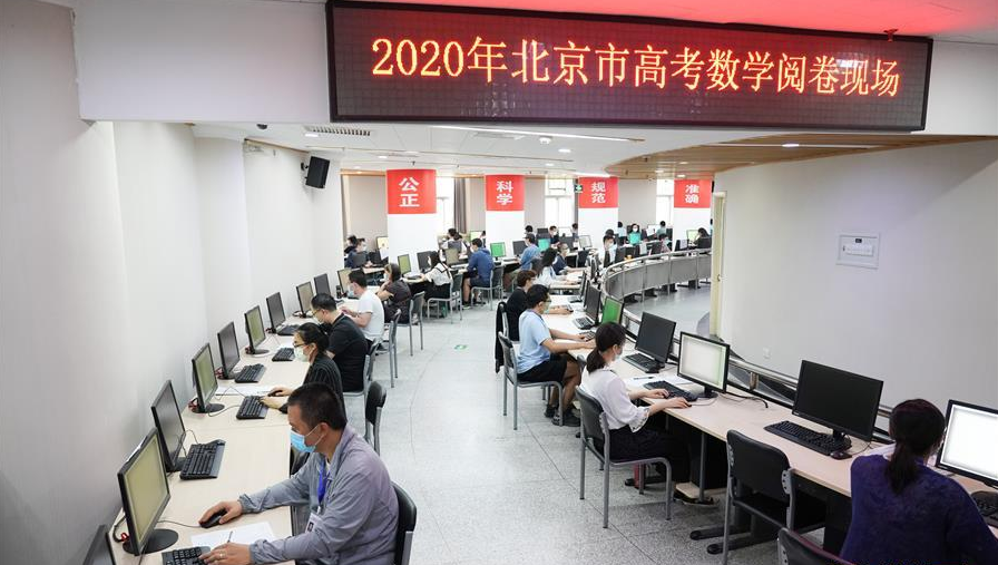 7月16日,評卷老師在位于清華大學的高考數(shù)學閱卷現(xiàn)場用計算機系統(tǒng)閱卷。
