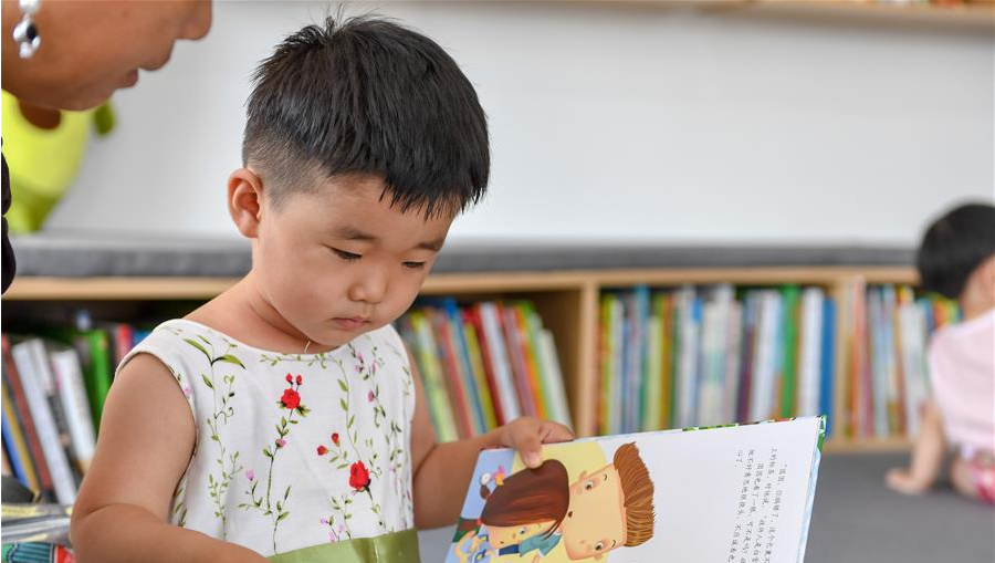 7月2日,在長春市少年兒童圖書館平陽社區(qū)繪本主題分館,管理員金敏為圖書進行消殺。