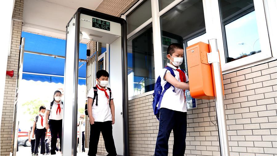 6月2日,上海閔行區(qū)鑫都小學的學生走進校園。