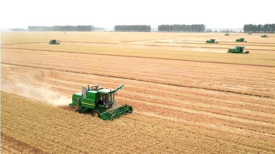 “三夏”時節(jié),中原大地一片金黃。位于河南省周口市的黃泛區(qū)農場機聲隆隆,10萬畝小麥收獲正酣。