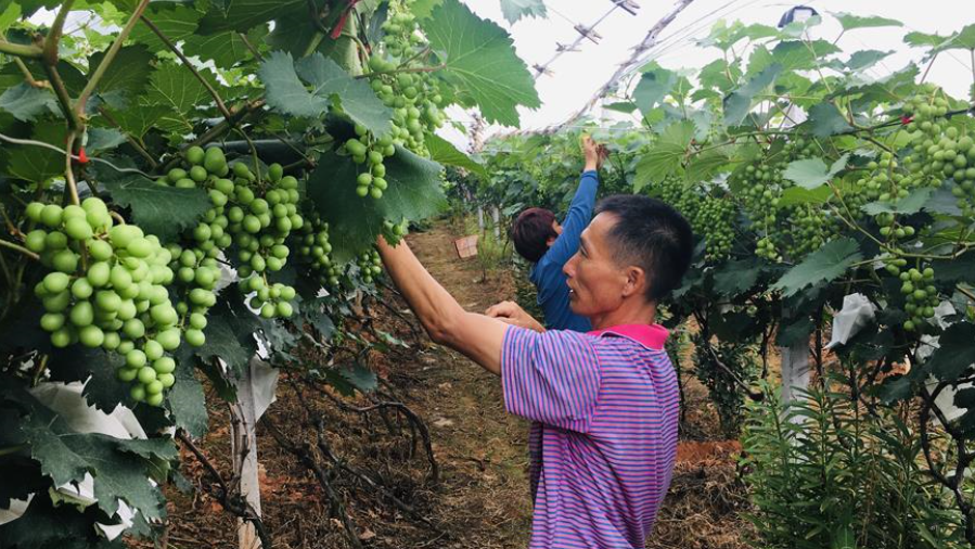 7月2日,湖南省宜章縣五嶺鎮(zhèn)沿江村村民肖國林夫婦在葡萄園內(nèi)勞作。