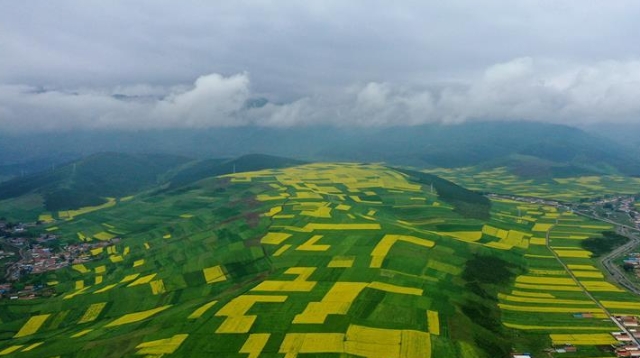 時下正值高原油菜花競相綻放的季節(jié),在青海省海北藏族自治州門源回族自治縣,金黃色的油菜花在高原藍(lán)天和云霧映襯下形成一幅壯麗畫卷,吸引游客前來觀賞。