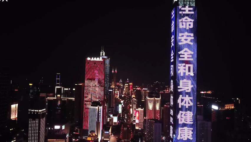 新型冠狀病毒肺炎疫情爆發(fā)以來(lái),福田區(qū)眾志成城,防控疫情。平安金融大廈、漢國(guó)大廈等眾多樓體及大屏幕紛紛亮起。