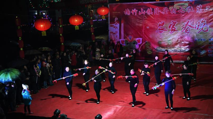 1月31日,隆興村七社村民在“農(nóng)家春晚”上表演打蓮簫。 當(dāng)日,重慶市南川區(qū)楠竹山鎮(zhèn)隆興村七社舉辦“農(nóng)家春晚”。