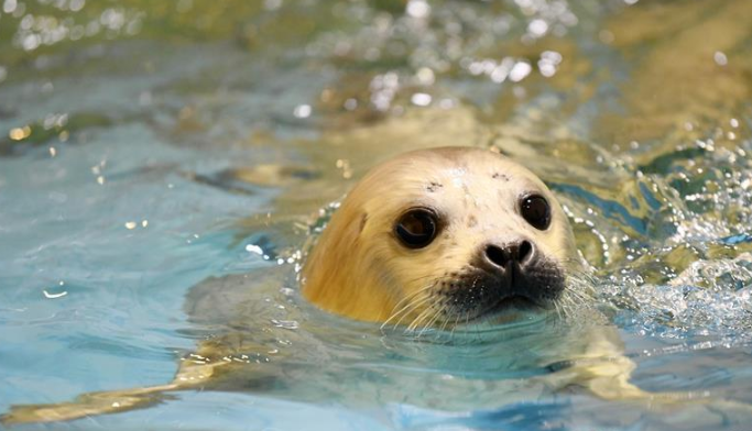 哈爾濱極地館:海豹寶寶水中“秀萌”