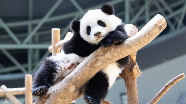 馬來(lái)西亞國(guó)家動(dòng)物園14日為中國(guó)旅馬大熊貓“興興”和“靚靚”所生的第二只雌性大熊貓寶寶慶祝一周歲生日。