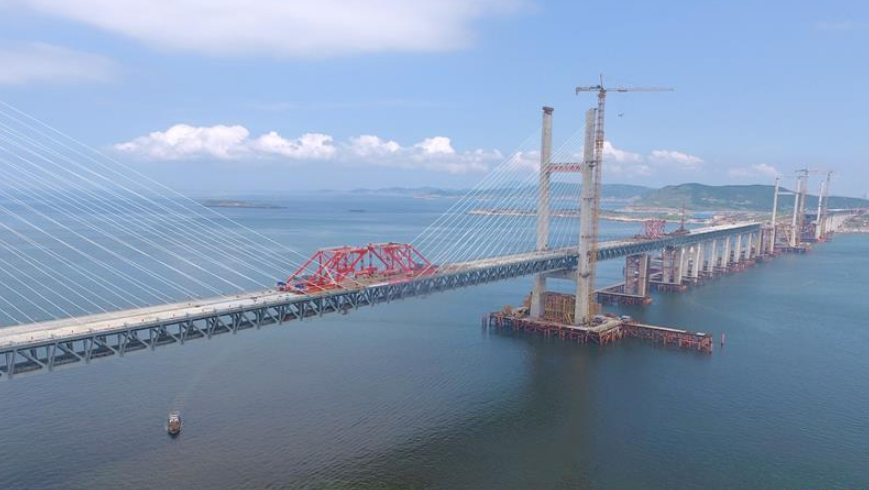當(dāng)日,總長為16.34公里的福平鐵路平潭海峽公鐵大橋鋪軌正式啟動。