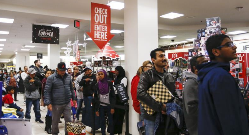 當(dāng)日,美國眾多商家競相開展“黑色星期五”促銷活動,吸引大批顧客搶購。?