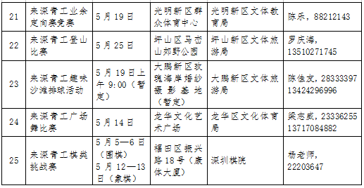 為便于更多青工了解、報(bào)名參與此次文體節(jié),活動主辦及承辦單位不但將通過多媒體渠道廣泛傳播,還將在深圳市文體旅游局官方網(wǎng)站(http://www.szwtl.gov.cn/)、深圳數(shù)字文化館(https://www.szmassart.com/)、“深圳公共文化”微信公眾號、“深圳市文化館”微信公眾號陸續(xù)發(fā)布活動各項(xiàng)信息。