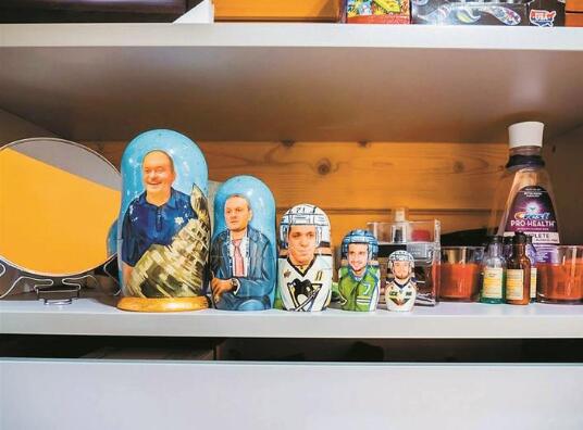 說起來,老烏沙科夫和中國也有點(diǎn)緣分,因?yàn)樗膬合眿D是一位來自中國杭州的女孩。烏沙科夫的家處于莫斯科郊外的富人區(qū),其實(shí)當(dāng)你踏入他家大門,就能立刻感覺踏入了一個冰球運(yùn)動員的世界。墻角里擺放著的全是冰球桿,家里的各種裝飾也都是由冰球桿以及各種海報(bào)組成的。最有趣的是,套娃和伏特加酒瓶上,都特別定制著老人的照片?!斑@個很棒!”記者指著套娃說道,而老烏沙科夫聳聳肩,表示很淡定。