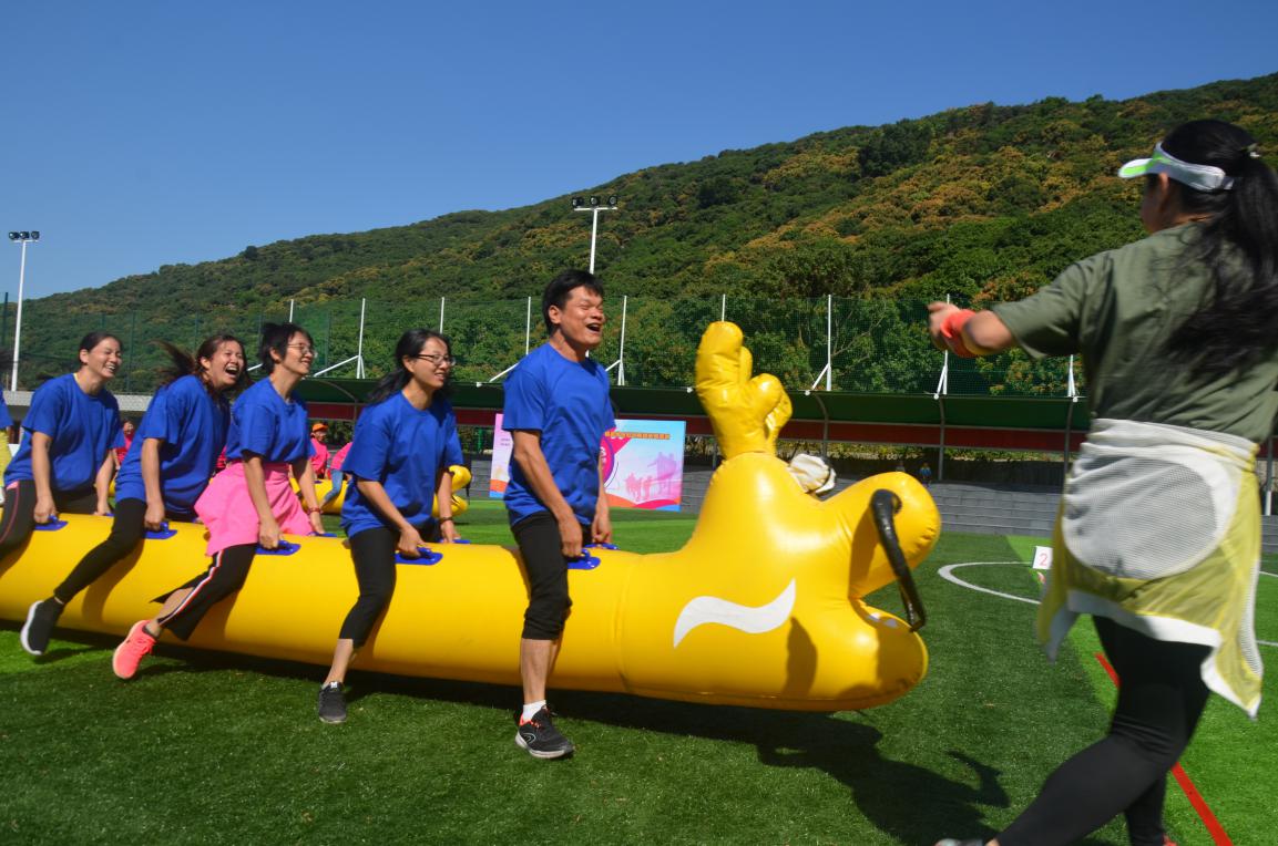 “龍行天下”游戲考驗(yàn)隊員的協(xié)調(diào)能力和合作精神,既需要技巧也非常消耗體力,隊員們激情滿滿,現(xiàn)場氛圍十分火爆,最終,開心隊(藍(lán)隊)以8分的好成績又拿到了第一名。