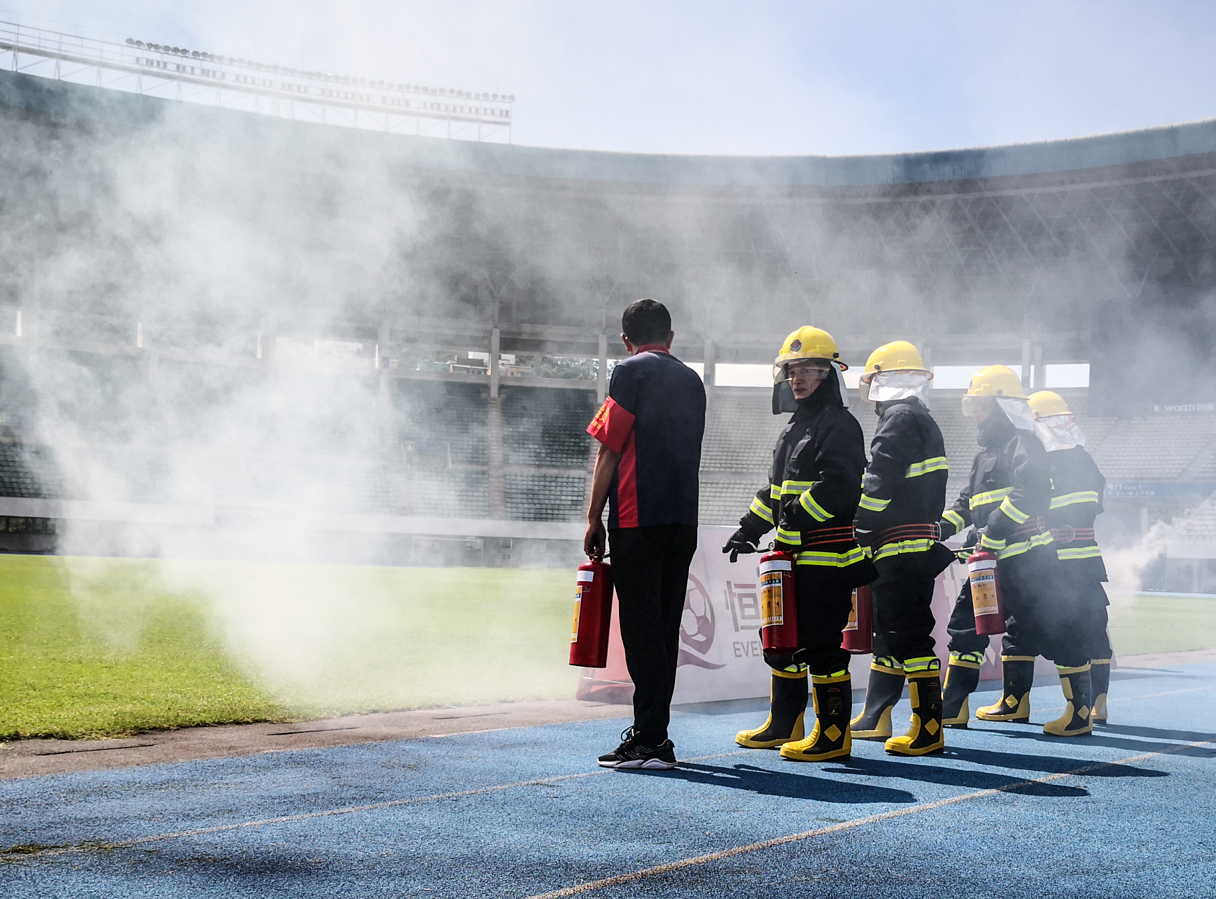 為確保本次演練到位,體育中心特別邀請了羅湖中學初中部的同學參加演練,讓孩子們有一次親身感受火災(zāi)疏散的經(jīng)歷,了解火災(zāi)疏散的流程,提升同學們的自救意識和技能。15:00,體育中心體育場,隨著一聲警報聲的響起各工作組在體育場播音系統(tǒng)指揮下第一時間到達指定位置,搶險求援組迅速開展消防滅火,警戒疏散組指揮在場地和看臺的學生快速、有序從就近路線撤離至廣場安全區(qū)域,并尋找是否有遺漏的學生。師生到達廣場安全區(qū)域,各班班主任清點學生人數(shù),確保學生無一人滯留,并層層上報。不到9分鐘時間,600多名羅湖中學初中部師生全部安全撤離。整個演習過程流程清晰,信息傳達準確、及時,疏散指揮反應(yīng)快速,未發(fā)生學生擁擠、無序的安全隱患,演習效果理想。