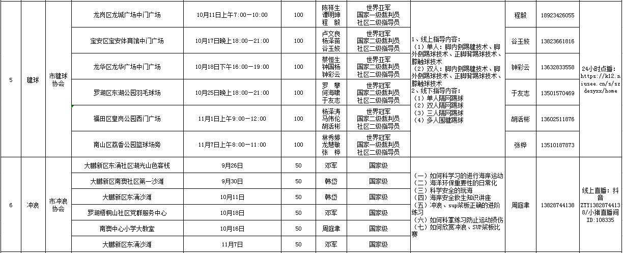 “科學(xué)健身指導(dǎo)活動”由深圳市文化廣電旅游體育局主辦,旨在通過分批、分點等方式,在做好疫情防控的同時,針對不同人群進(jìn)行戶外健身運動個性化指導(dǎo)服務(wù),助力全市煥發(fā)新活力,促進(jìn)全民健身高質(zhì)量發(fā)展。活動自8月2日啟動以來,已有眾多一線社會體育指導(dǎo)員和體育產(chǎn)業(yè)專家通過深入社區(qū)現(xiàn)場教學(xué)、錄制視頻等方式,向廣大市民宣傳、講解科學(xué)健身的知識和方法。