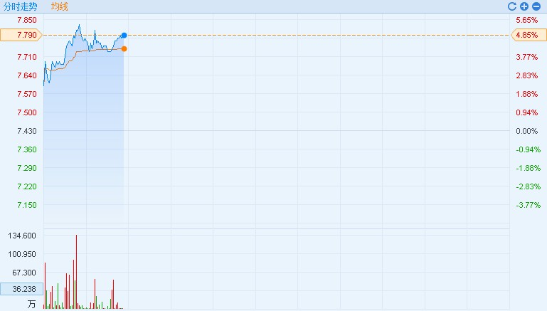 鞍鋼股份(00347)昨日公布中期業(yè)績,上半年凈利潤同比增長91.94%至34.99億元,股價上漲,截至10時20分,漲4.58%,報價7.77港元,成交額8685萬。