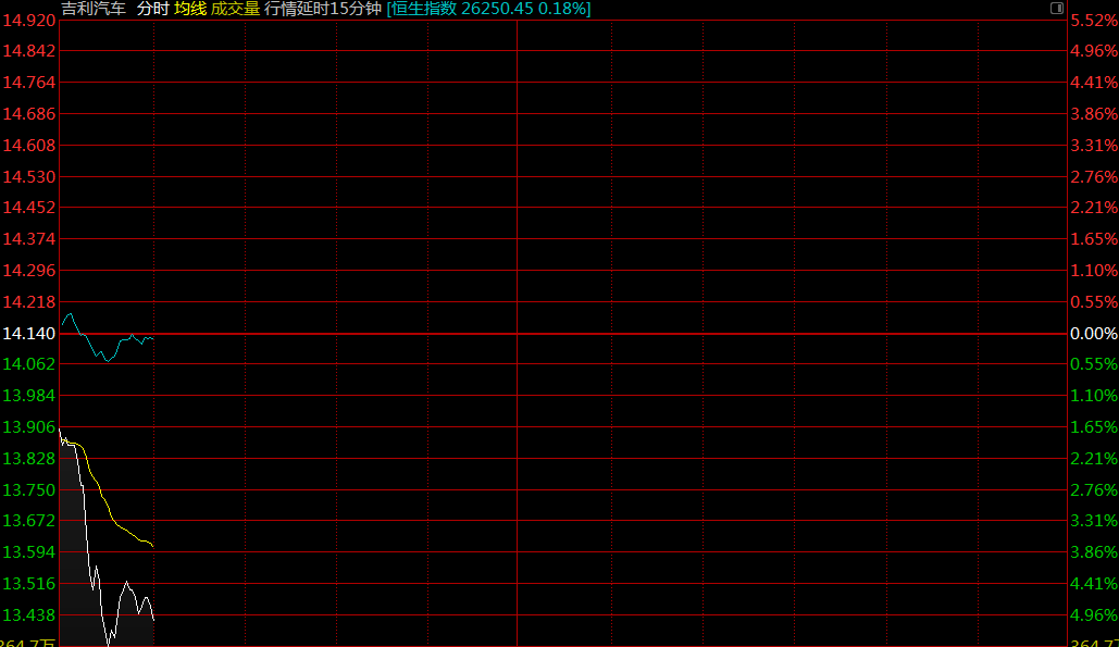 港股異動(dòng)︱9月銷(xiāo)量環(huán)比減少約1%吉利汽車(chē)(00175)跌逾5%