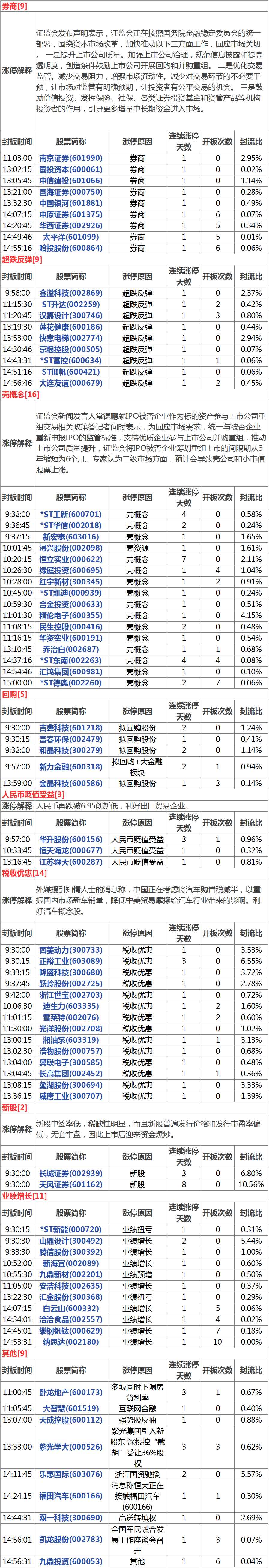 今天漲停家數(shù)較上一交易日有所增加,兩市78家漲停;跌停7家。成交量方面,滬市成交1524億元,深市成交1586億元,兩市總成交額約為3110元,較上一交易日放量556億元。盤面上,券商、高送轉(zhuǎn)、保險(xiǎn)等板塊漲幅居前,白酒、黃金等板塊跌幅居前。