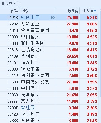 智通財(cái)經(jīng)APP獲悉,多地按揭利率出現(xiàn)松動(dòng)放款加速,內(nèi)房股集體上揚(yáng)。