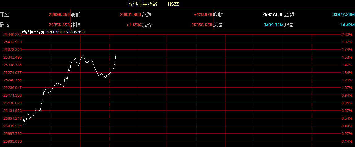 智通財(cái)經(jīng)APP獲悉,恒生指數(shù)開(kāi)盤漲0.66%,報(bào)26099.35點(diǎn)。國(guó)企指數(shù)漲0.63%,報(bào)10453.82點(diǎn)。紅籌指數(shù)漲0.48%,報(bào)4281.96點(diǎn)。大市盤前成交11.68億港元。