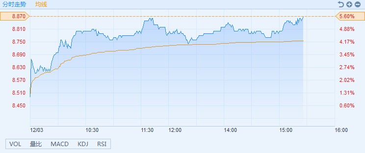前10月發(fā)動機銷量56.6萬臺同比增8.8%,濰柴動力(02338)股價造好,截至15時25分,漲5.6%,報價8.87港元,成交額1.35億。