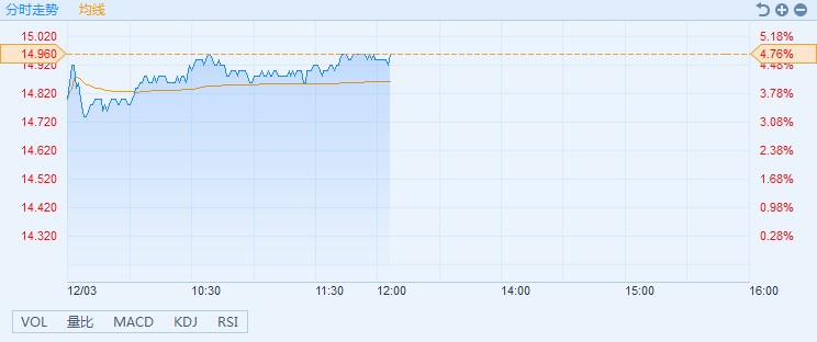 智通財(cái)經(jīng)APP獲悉,本屆G20峰會(huì)上,中美就經(jīng)貿(mào)問題達(dá)成共識(shí),決定停止升級(jí)關(guān)稅等貿(mào)易限制措施。貿(mào)易摩擦的超預(yù)期緩和,為小米憑借商業(yè)模式創(chuàng)新和技術(shù)創(chuàng)新參與國(guó)際競(jìng)爭(zhēng)松綁,該股股價(jià)應(yīng)聲而漲。截至13時(shí)05分,漲4.76%,報(bào)價(jià)14.96港元,成交額4.03億。