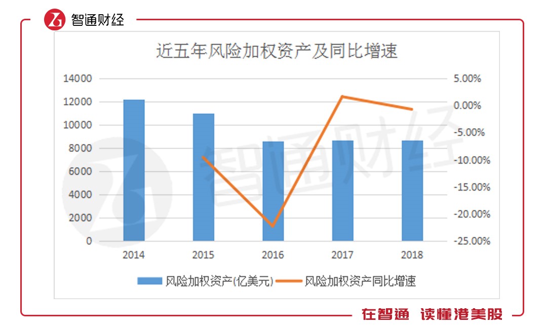 風(fēng)險加權(quán)資產(chǎn)方面表現(xiàn)與總資產(chǎn)類似,于2017年大幅增長,至去年有所回落。據(jù)智通財經(jīng)APP了解,2018年,匯豐控股風(fēng)險加權(quán)資產(chǎn)達(dá)8653.18億美元,同比下降0.69%。