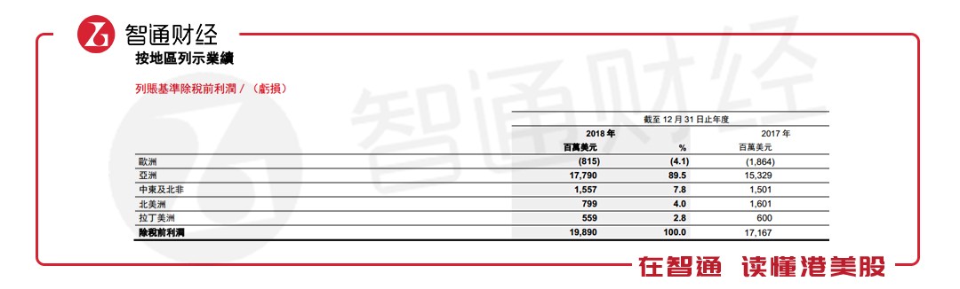 從地區(qū)來看,以亞洲地區(qū)為重心的策略持續(xù)發(fā)力,2018年亞洲市場依舊為盈利貢獻(xiàn)最大的地區(qū),為集團(tuán)帶來89.5%的列賬基準(zhǔn)除稅前利潤,較去年增長0.2個百分點。歐洲市場虧損也較大幅度縮減。然而,在匯控去年于北美地區(qū)突飛猛進(jìn)后,2018年又有所回落。