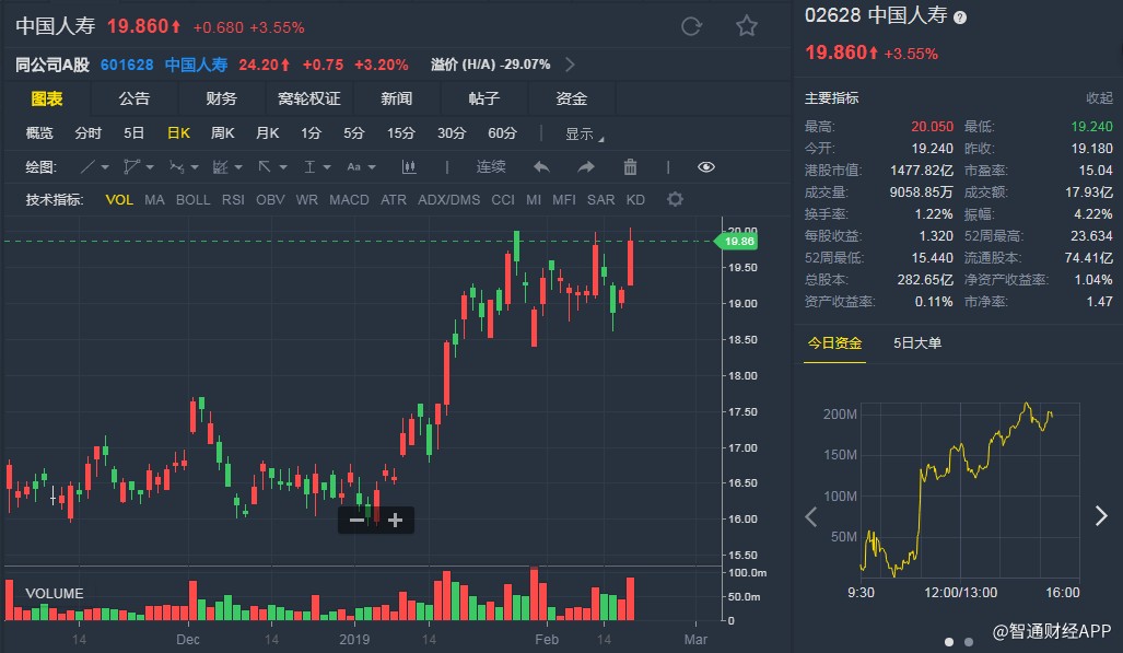 截至發(fā)稿,中國人壽(02628)升3.55%,報(bào)19.86港元。(劉大洋)