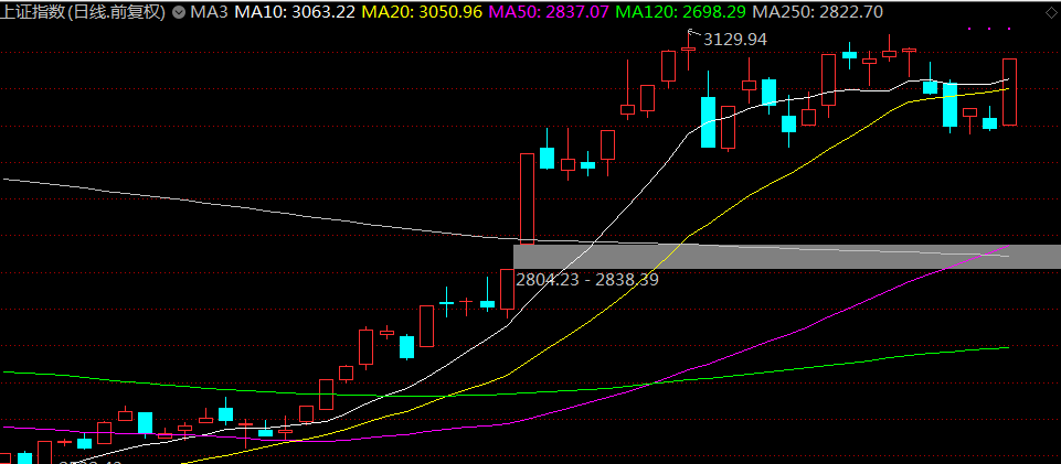 上證指數(shù)方面,這個位置的30分鐘中樞已構(gòu)建完成,調(diào)整隨時可以結(jié)束,方向選擇待定,關(guān)注30分鐘中樞上軌3125點壓力,30分鐘中樞下軌2968點支撐。就目前的市場情緒來看,傾向于向上突破中樞,構(gòu)建30分鐘的第三類買點(突破中樞上軌后,回調(diào)段不破中樞上軌)。