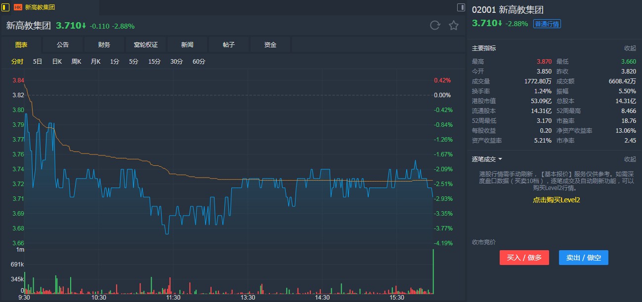 新高教日前公布,以先舊后新方式配售1.1億股,占擴大后已發(fā)行股本約7.14%,每股配售價為3.57元,較上日收市價3.93元,折讓約9.2%。所得款項凈額預期約3.89億元,擬用作償還債務及一般企業(yè)用途。配售完成后,除承配人外的公眾股東持股比例,將由44.66%降至41.47%。