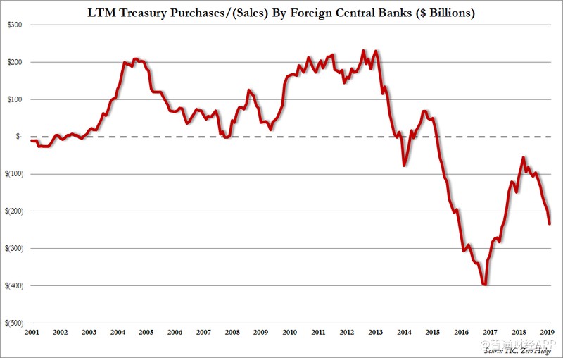 以比利時(shí)清算機(jī)構(gòu)為主導(dǎo),外國(guó)央行連續(xù)第五個(gè)月拋售美國(guó)國(guó)債(共計(jì)減1570億美元),以及過(guò)去11個(gè)月里有10個(gè)月減持(共計(jì)減2520億美元)。盡管這其中很大一部分被從私人賬戶購(gòu)買所抵消。