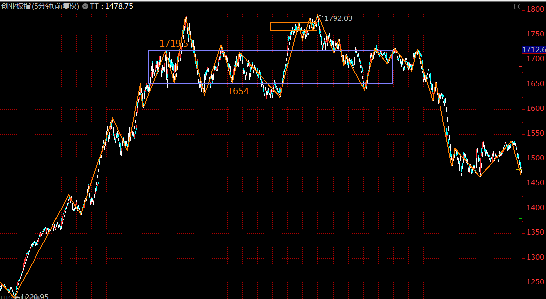 同級別分解后,創(chuàng)業(yè)板指數(shù)這里也進(jìn)入了4月8日開始的五分鐘級別下跌趨勢最后一段,周一再次探底后,可全面轉(zhuǎn)入進(jìn)攻模式。