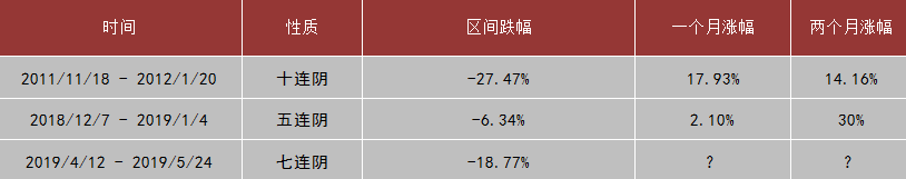 上周市場(chǎng)周一探底后,在稀土、芯片、華為概念等貿(mào)易戰(zhàn)板塊個(gè)股帶領(lǐng)下上破2900點(diǎn),最終由于量能不濟(jì),震蕩回落。最終,上證指數(shù)報(bào)收2852.99點(diǎn),周跌幅-1.02%;深證綜指報(bào)收1496.03點(diǎn),跌-2.43%;創(chuàng)業(yè)板指收1443.75點(diǎn),跌-2.37%。值得一提的是,創(chuàng)業(yè)板指數(shù)周k線七連陰,統(tǒng)計(jì)表明,創(chuàng)業(yè)板歷史上,周k線出現(xiàn)五連陰及以上的情況僅有兩次,無(wú)一例外的對(duì)應(yīng)了階段性底部區(qū)域。對(duì)應(yīng)后續(xù)一個(gè)月及兩個(gè)月的漲幅如下表所示: