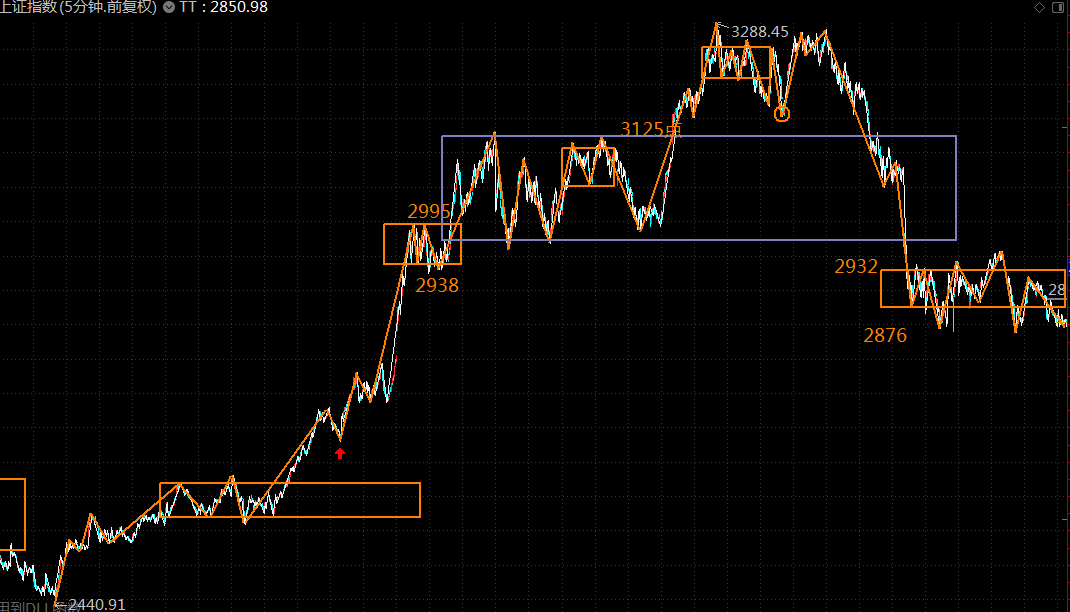 下圖為上證指數(shù)五分鐘級(jí)別走勢(shì)結(jié)構(gòu),第三類賣點(diǎn)已過,第一類買點(diǎn)正在構(gòu)建中,預(yù)計(jì)最差的情況,周一周二即可走完這波調(diào)整走勢(shì),第一目標(biāo)回補(bǔ)上方3050處的貿(mào)易戰(zhàn)缺口。