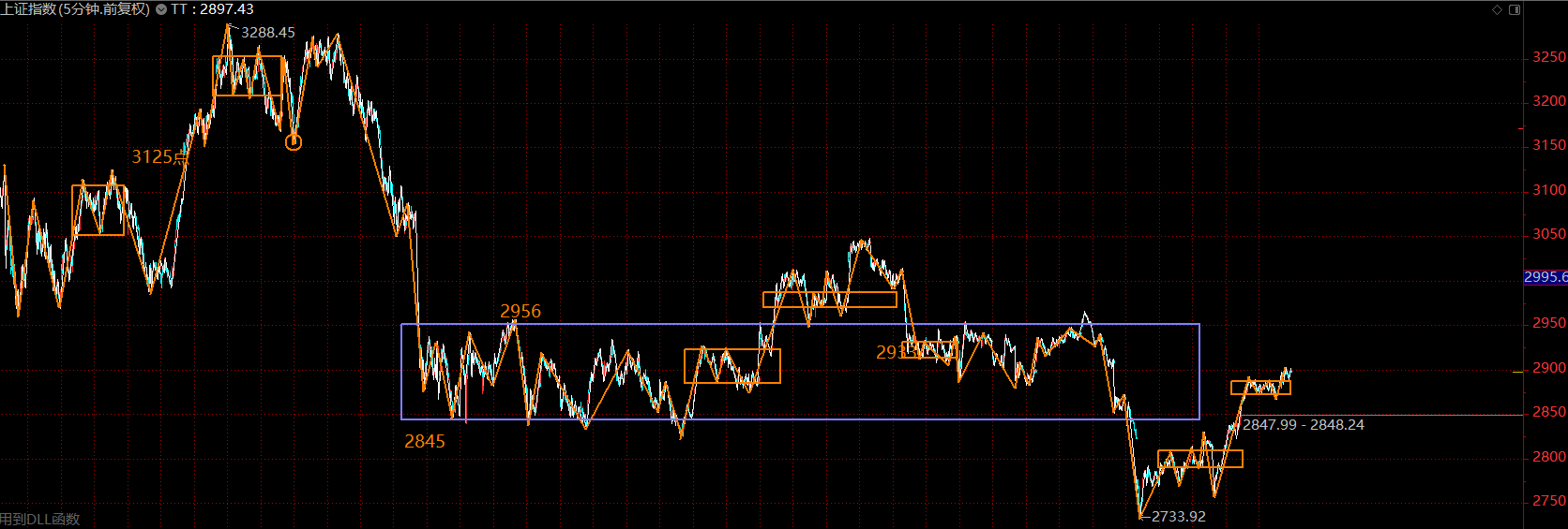 結(jié)合周五盤后的消息,這里五分鐘的上漲趨勢應該已經(jīng)結(jié)束,市場強于預期,并沒有在中樞下方結(jié)束這段上漲趨勢,而且在中樞的中部,回落后,如果不創(chuàng)新低,則構(gòu)成大級別的二買,中期大行情可期。短期這里可能會面臨一波回落,周一早盤如果開在2845上方,則可持股不動,如果低于2845點,則可在上拉時適度減倉,后續(xù)在2733與2800之間擇機回補。