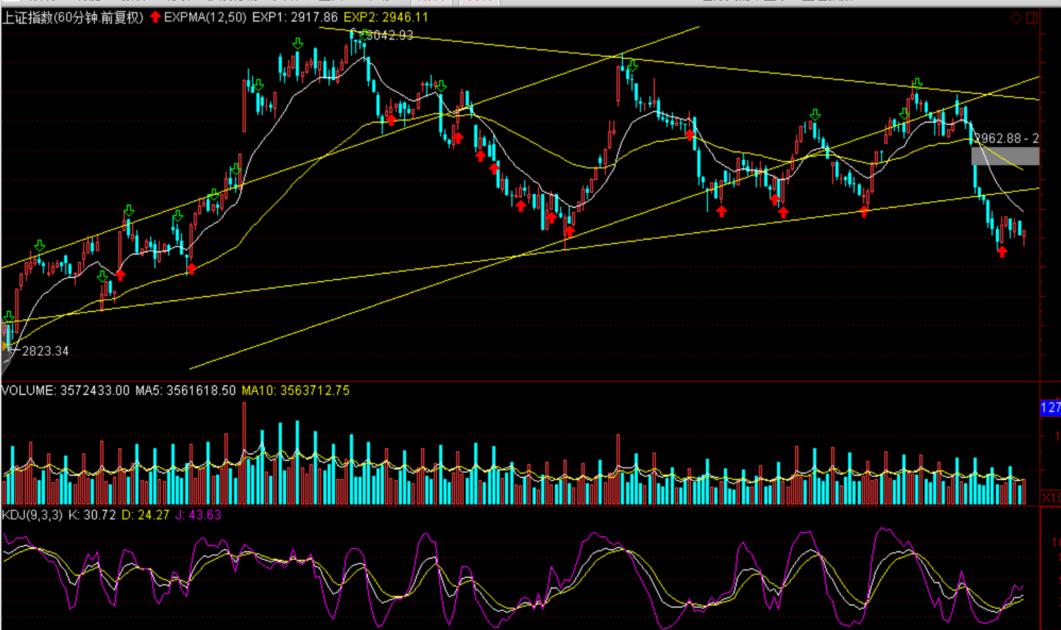 技術(shù)面:短期初現(xiàn)止跌信號(hào),本周兩個(gè)交易日關(guān)注能否收復(fù)收斂三角形下軌(滬指2935點(diǎn)一線),如周五收盤(pán)站穩(wěn)2935點(diǎn)則延續(xù)區(qū)間收斂三角形區(qū)間運(yùn)行。